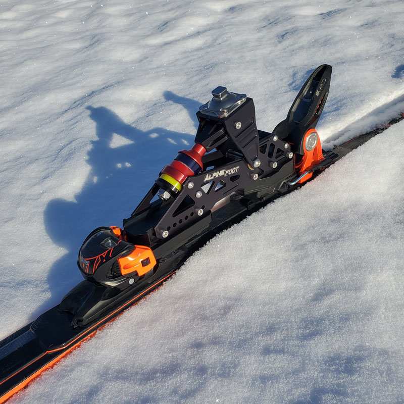 A high-performance prosthetic foot purpose built for dowhill skiing that eliminates the need for traditional ski boots by directly connecting the Alpine Foot to the ski binding.